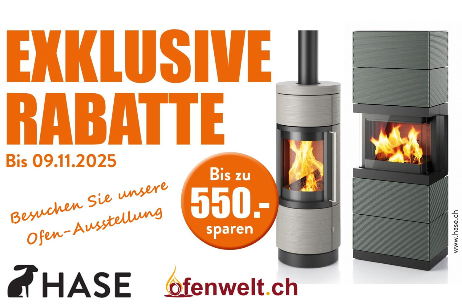 Grosse Herbstaktion - Sie erhalten einen Rabatt von bis zu Fr. 550.-- beim Kauf eines neuen HASE-Cheminéeofens ...